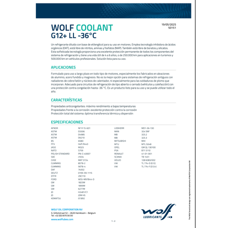 Este refrigerante listo para usar emplea tecnología OAT (Ácidos Orgánicos), diseñada específicamente para proteger sistemas modernos que utilizan aleaciones de aluminio y magnesio, comunes en vehículos europeos.